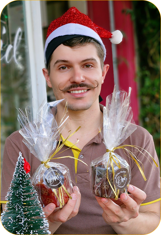 Em 2018, esse sonho se concretizou: abrimos nossa loja Delícias Madrid no coração da cidade. Fomos conquistando fama pela nossa obsessão pela qualidade e pelo carinho que colocamos em cada detalhe – tanto nos produtos quanto no atendimento. Nossa missão sempre foi simples: levar amor e alegria através das nossas delícias.